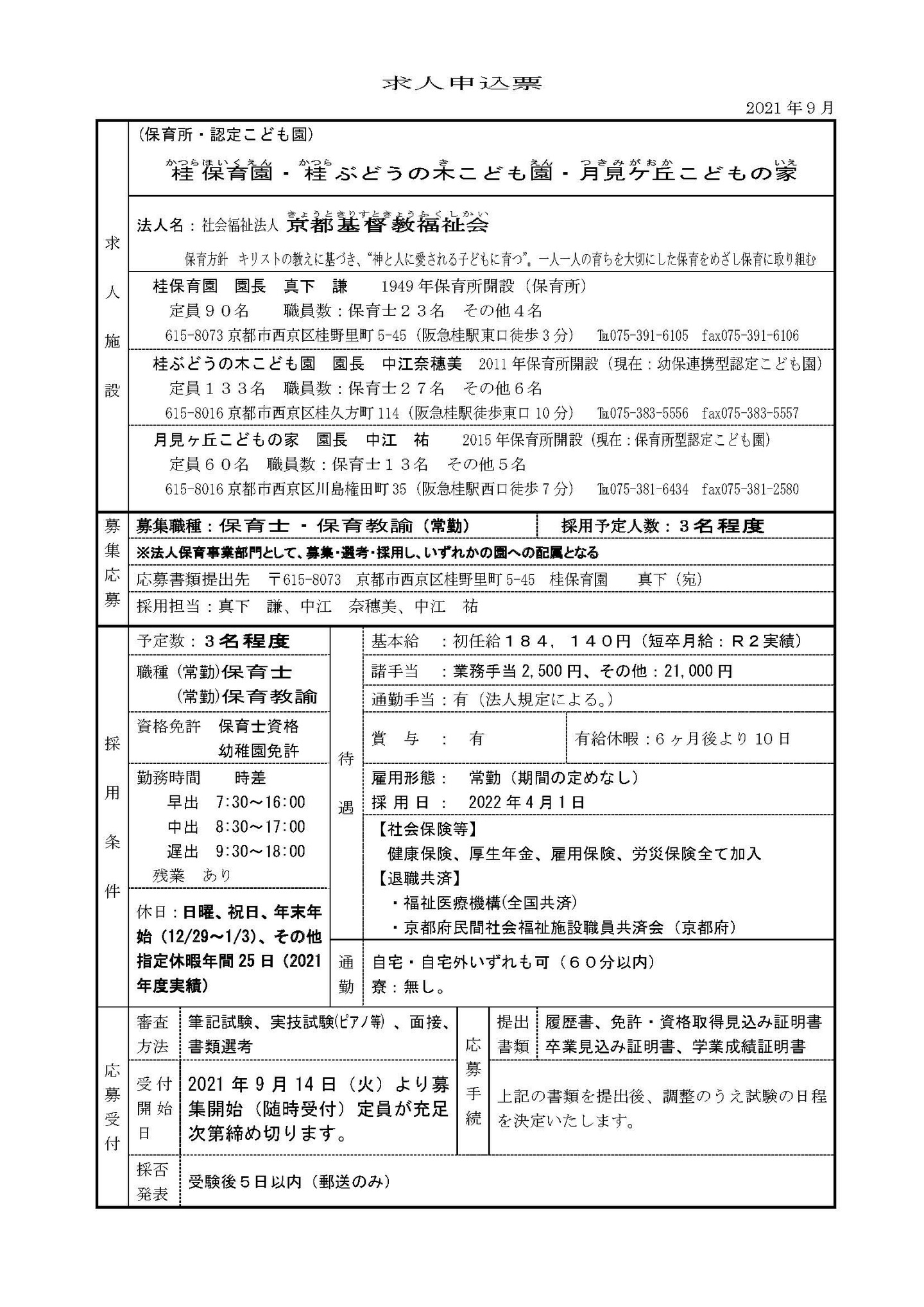 採用に関するご連絡は桂保育園まで!